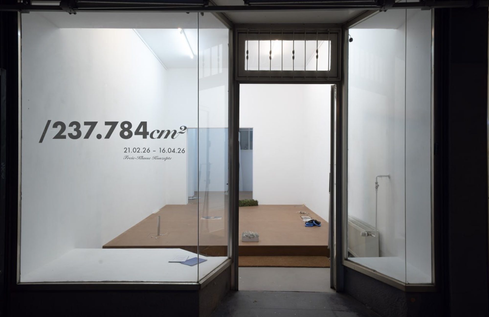 Instead, their gaze is drawn downwards to a raised floor that spans the gallery and becomes the exhibition space. This constructed floor acts as a connecting element between different artistic positions; works are placed on this second floor, embedded in it, or concealed beneath it. This shift deliberately disrupts traditional gallery viewing habits: The focus moves from the wall—traditionally the privileged site of presentation—to the floor, that omnipresent yet often overlooked element of the space. There, questions of spatial division, use, materiality, and accessibility become directly tangible. Without any specific attribution, the shared space takes center stage.